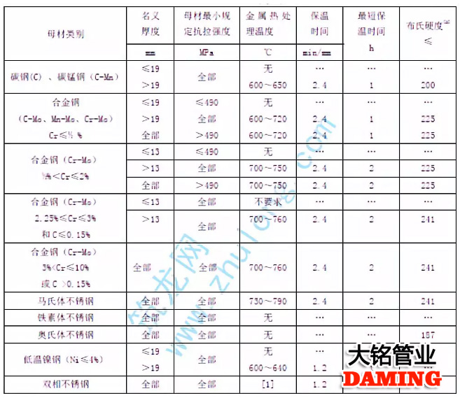 焊后熱處理應符合設計文件的規定。設計文件無規定時,可按下表規定: