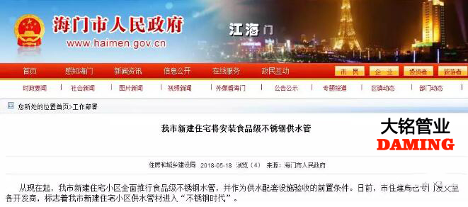 可以預(yù)見,海門的舉措只是開始,未來還將有更多城市水管網(wǎng)改造、住宅,啟用不銹鋼管水管,作為普通老百姓,不銹鋼水管也將成為供水管的優(yōu)先選擇。